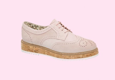 Нюдовый цвет, брогированный мысок, пробковая подошва и цветочки на подкладке выглядят одновременно и нежно, и практично. Помнишь, как блогеры играют с бежевой обувью, визуально делая ноги километровыми.