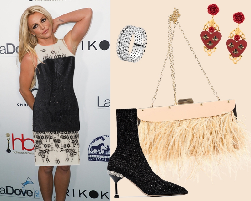 Черно-белое платье больше по духу напоминает наряд фигуристки (то, что любит Бритни), но при этом не открывает вульгарно интимные подробности тела певицы, как полупрозрачное мини-платье, которое было на ней изначально. А замысловатые аксессуары делают образ беззаботным.