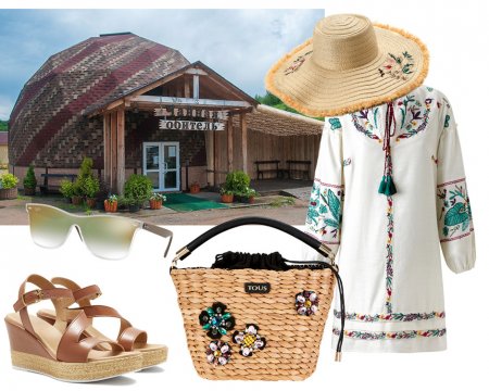 Шляпа и вышиванка Mango; очки Ray-Ban; сумка Tous; босоножки next.com.ru