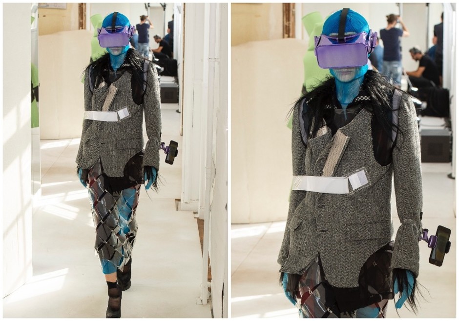 В попытке показать что-то нестандартное и красивое Maison Margiela создал многослойные образы с использованием различных тканей, целлофана и пластика. Модели, напоминающие инопланетянок или гостей из будущего, прошлись по подиуму с голубыми чулками на лице и с прикрепленными к ногам смартфонами.