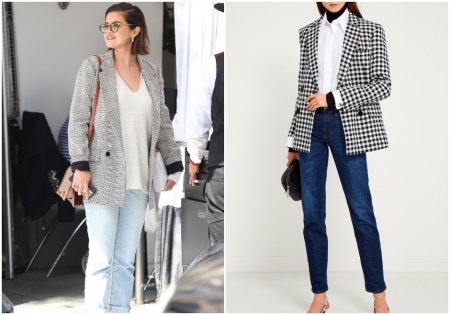 Селена Гомес; жакет MO&Co (aizel.ru)138 миллионов подписчиков в Instagram, первые строчки в музыкальных чартах, продуманные образы на ковровых дорожках превратили юную Селену Гомес в музу для многих девушек. В подборе повседневных нарядов звезда предпочитает простые, но в то же время стильные вещи: чаще всего это casual-платья, стиль спорт-шик или игра в маскулинный крой.