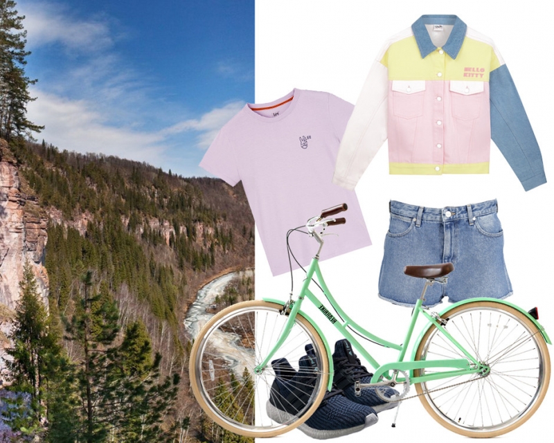 Футболка Lee; куртка Hello Kitty x ASOS; шорты Wrangler; велосипед Bear Bike; кроссовки adidasКак здорово не сидеть в выходные в городе, вот, например, жители Уфы собираются в воскресенье отправиться в Белорецкий район на живописные Розовые скалы.