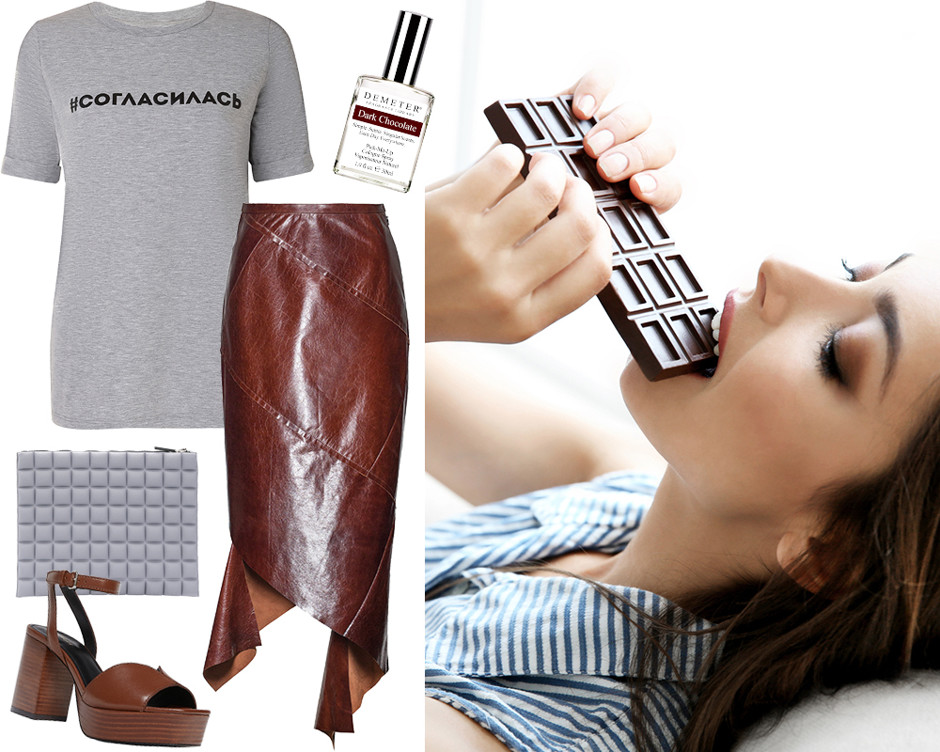 Футболка BAON by Liasan Utiasheva; духи Demeter; юбка LITKOVSKAYA; сумка NO KA' OI (farfetch.com); босоножки UterqueВ июле отмечается необыкновенно вкусный праздник — Всемирный день шоколада! Его придумали во Франции в 1995 году, причем французы хотели оставить этот праздник себе и отмечать тихонечко внутри страны, но любители сладкого разнесли весть об особом дне по всему миру.