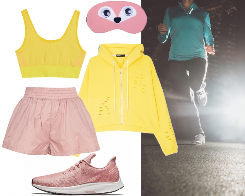 Маска для сна «Гоголь-Моголь»; бра ASOS 4505; шорты Sport Angel (aizel.ru); толстовка Manouk (aizel.ru); кроссовки Nike PegasusА ты готова к единственному массовому забегу в Москве, который стартует после захода солнца? На одну ночь столицу заполнит поток движущихся огней: тысячи участников пробегут по центру города с налобными фонариками. 10-километровый маршрут стартует на территории олимпийского комплекса «Лужники», потом петляет по Фрунзенской и Пречистенской набережным, мимо здания президиума Российской академии наук (РАН) и Национального центра управления обороной Российской Федерации, по Андреевскому и Крымскому мостам, через бывшую кондитерскую фабрику «Красный Октябрь» и Храм Христа Спасителя.