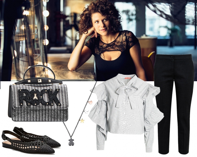 Брюки Elisabetta Franchi; рубашка MANGO; сумка MICHAEL MICHAEL KORS; мюли SIGERSON MORRISON (yoox.com); игрушка Гоголь-Моголь