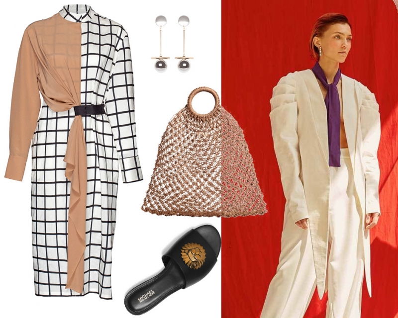 Платье LITKOVSKAYA; серьги Springfield; сумка MANGO; обувь MICHAEL MICHAEL KORS