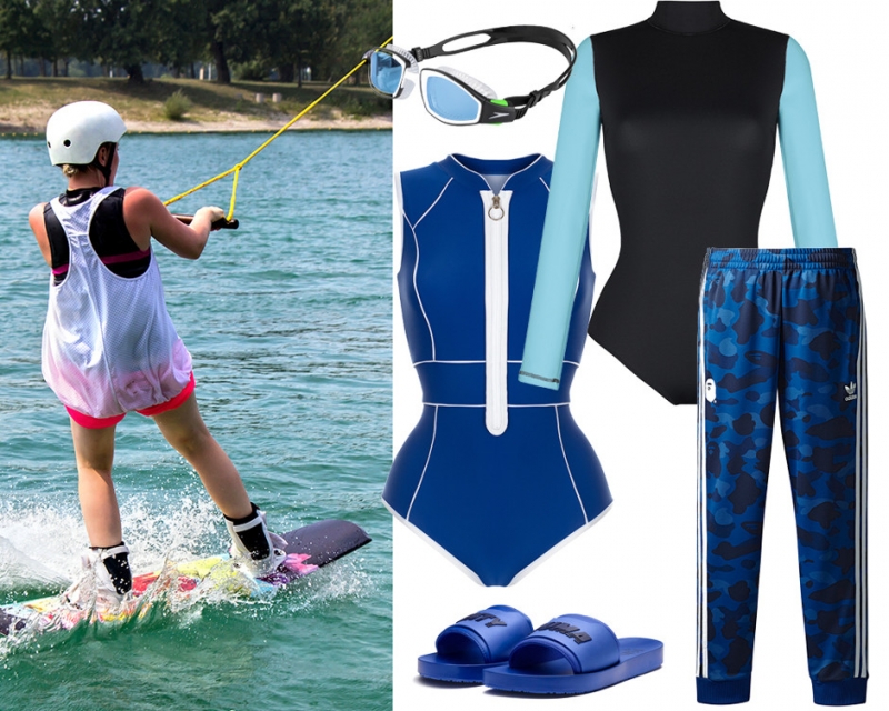 Без купальника вход воспрещен! Подбирай к нему шлепки и спортивки — будешь и в стиле, и раздеваться будет удобно, чтобы в любой момент прыгнуть в воду.