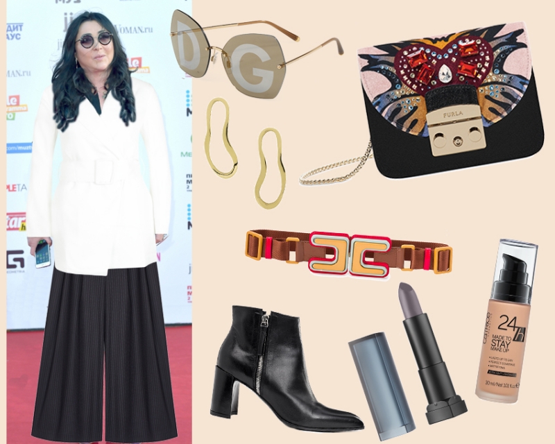 На прошлой неделе мы задались целью омолодить певицу Лолиту Милявскую, которую мы застали на премии «МУЗ-ТВ» в черном наряде, который подобно дементорам (из «Гарри Поттера») высосал из нее все соки и жизнерадостность. Эксперимент, считаем, удался. Белый удлиненный жакет идеально подходит фигурам, не соответствующим модельным параметрам, ультраширокие брюки тоже способствуют гармоничному распределению ткани по силуэту и визуально стройнят певицу.