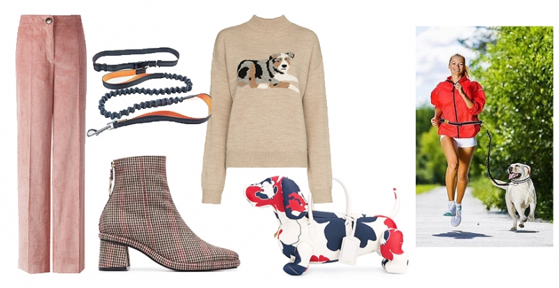 Брюки MANGO; поводок для бега Велоспрингер; ботильоны REIKE NEN (farfetch.com); свитер SANDY LIANG (farfetch.com); сумка THOM BROWNE (farfetch.com)