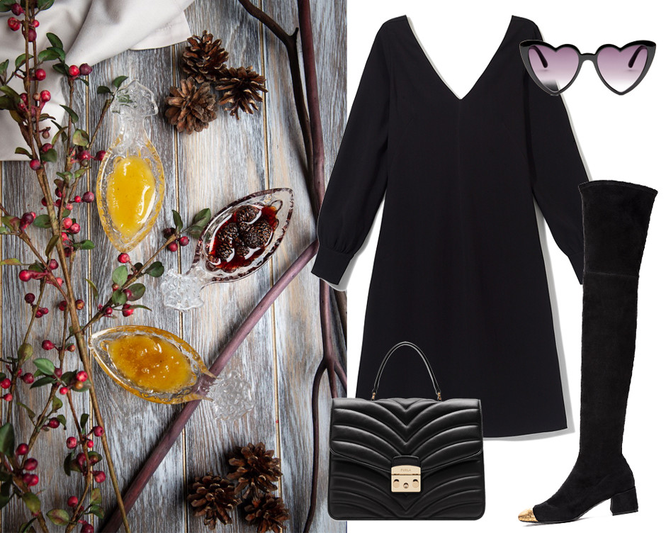 Платье Reserved Premuim; ботфорты Ballin; сумка Furla; очки MANGO«Я так любила осень — когда уже в избах начнутся посиделки». Этой цитатой из Достоевского можно охарактеризовать новый сезон в «Шинке» — так приятно укрыться от ненастной погоды в уютной «избе», собрать всех родных и близких и в полной мере пожинать плоды осени. Шеф-повар ресторана Елена Никифорова обрадует новинками из лесных грибов и другими специалитетами.