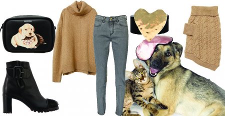 Сумка Balenciaga (aizel.ru); ботильоны Christian Louboutin (aizel.ru); свитер H&M и свитер для собаки H&M; джинсы Wrangler; ремень Zara
