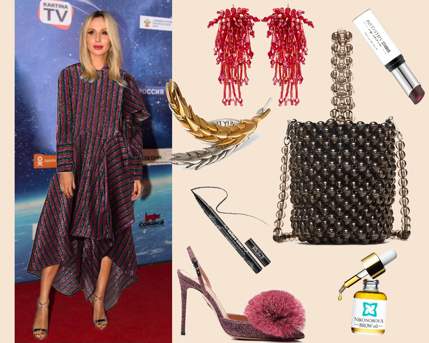 Платье Petar Petrov (net-a-porter.com); серьги EXCLAIM (dressone.ru); брошь ALEXANDER ARUTYUNOV (dressone.ru); сумка Zara; туфли AQUAZZURA (aizel.ru); двойная помада Artistry; лайнер для век Kat Von D; Масло для бровей Nikonorova&StolyarovНаш долгожданный новичок — Инна Маликова. Певицу застали врасплох на открытии выставки «Микки Маус. Вдохновляя мир» в Artplay в шелковой объемной блузке, полупрозрачной юбке прямого кроя из красного кружева и лодочек с пятнами леопарда. Несовместимое совместить ей, к сожалению, не удалось, потому что подружить вещи из настолько разных миров способна разве что Анна Делло Руссо.