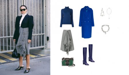 Давай лучше посмотрим, что есть на картинке такого, что нам по душе, что можно применить к гардеробу обычной девушки? К примеру, юбка в клетку смотрится интереснее, чем просто черная или серая.
