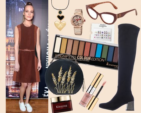 Начинаем, как всегда, с героини прошлой недели — Глюкозы! Она пришла на презентацию линии одежды певицы Нюши в платье, напоминающем детский передник, в кедах и взяла микроскопическую сумку. Мы предложили ей два совершенно новых выхода из сложившейся ситуации с неоднозначным платьем, а ты выбрала самый подходящий: замшевое платье красивых коричневых оттенков с сумкой, напоминающей о плодородной осени (с колосками), высокие сапоги-чулки, золотые часы и подвеску в виде сердец.