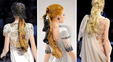Пожалуй, никто не ожидал, что прически и аксессуары для волос на Неделе Высокой Моды в Париже сезона осень/зима 2009-10 произведут даже больший эффект, чем экстравагантные наряды новых коллекций. Фурор произвели модели на показе Chanel. Волосы, убранные в «конский хвост», дополняли декоративные локоны и шляпки в форме шлема из черной вуали с мерцающими бусинами.