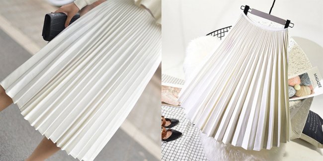 Почему стоит купить: если хочется легкости и женственности, а узкие модели надоели, выбирай плиссе — универсальную юбку можно носить в любое время года. Зимой утеплить образ можно высокими сапогами и объемным свитером.