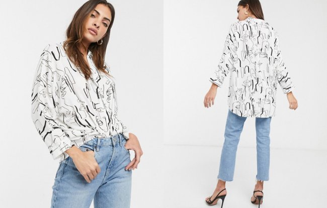 Нейтральная рубашка, принт на которой хочется рассматривать, может заменить скучные офисные блузки или универсальные, но надоевшие футболки. Носи навыпуск или асимметрично заправляй ее в джинсы.