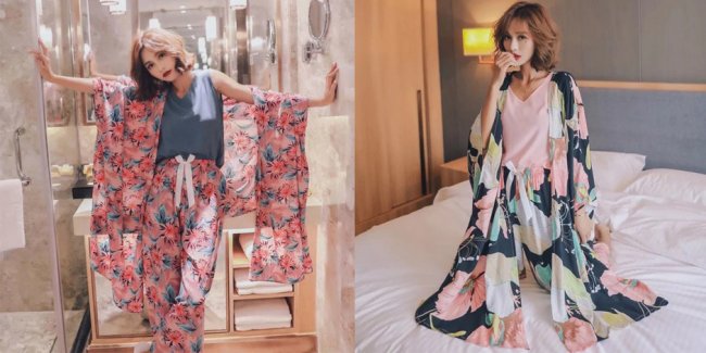 Если ты любишь переодеваться (или тебе то жарко, то холодно – убивай двух зайцев (разумеется, метафорично) сразу. В комплекте есть шорты, брюки, футболка без рукавов и халат из вискозы, так что выбор гарантирован. В отзывах обещают, что ткань приятная и мягкая к телу, а пижама легко и быстро разглаживается утюгом.