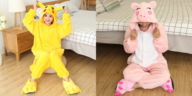 Вариант для девушек с юмором. Кигуруми стали модными в Японии уже давно, а до нашей страны тренд докатился в прошлом году. Ростовая пижама особенно подойдет тем, кто постоянно мерзнет. Покупатели оценили качество и ровные швы. Главное – не забыть заглянуть в таблицу размеров и выбрать свой не только по объемам, но и по росту.