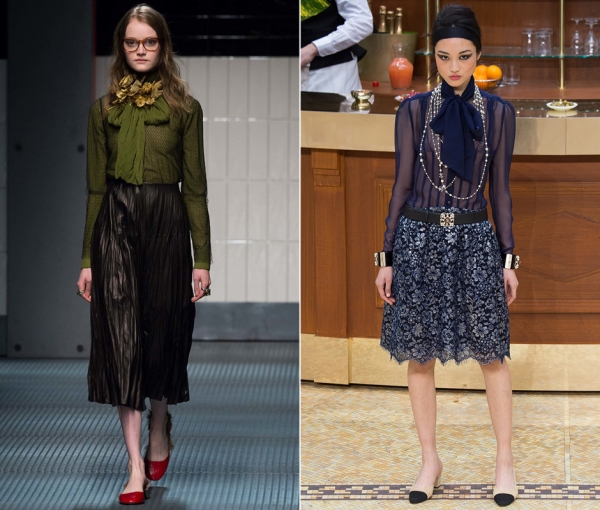 Блузки с бантами, наверняка, ассоциируются у вас с советскими временами, школьными учительницами и строгими правилами. Благодаря Алессандро Микеле, креативному директору Gucci, в сезоне осень-зима 2015/2016 блузки с бантами снова вошли в моду! Эта тенденция прослеживается в коллекциях как именитых дизайнеров, так и бюджетных марок. Дизайнеры предлагают нам альтернативу: создать женственный образ с помощью пышного банта или же строгий деловой образ с лаконичной лентой. Вы можете просто купить шелковый галстук и добавить его к вашей любимой блузке, либо небрежно повязать тонкий шарф.