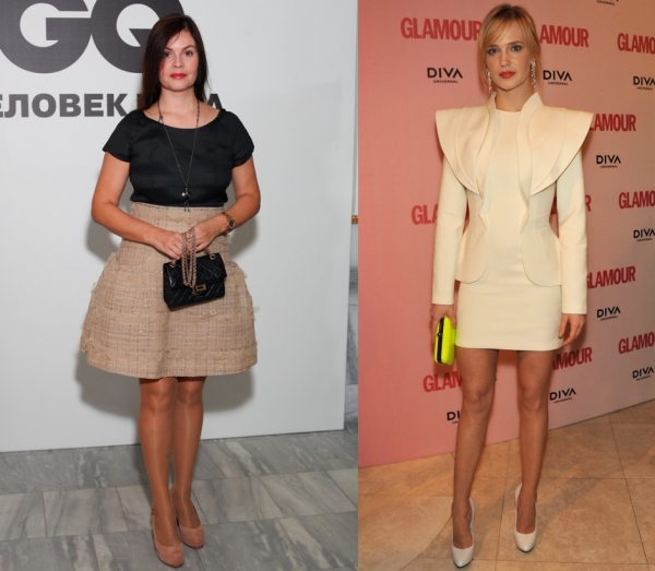 НЕТ: даже самые, казалось бы, незаметные капроновые колготки будут предательски поблескивать, как на этом фото Екатерины Андреевой. ДА: Глюкоза, как и многие звезды, появляется на вечерних мероприятиях с голыми ногами независимо от времени года.