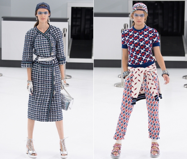 Креативный директор Chanel Карл Лагерфельд уверен, что сезон весна-лето 2016 года станет идеальным временем для путешествий. Свою новую коллекцию дизайнер создал под влиянием «чемоданного настроения» и превратил подиум в терминал самого настоящего аэропорта с металлическими креслами, выходами на посадку и стойкой Chanel Airlines. Добрая половина коллекции — фантазии и вариации на тему легендарного твидового костюма французского модного дома. Из ярких новинок — бело-сине-красный самолетный принт. Из заметных тенденций — многослойность. Дополнительные вещи, которые могут понадобиться в самолете или после выхода в город, рекомендуется накинуть на плечи или завязать на талии.