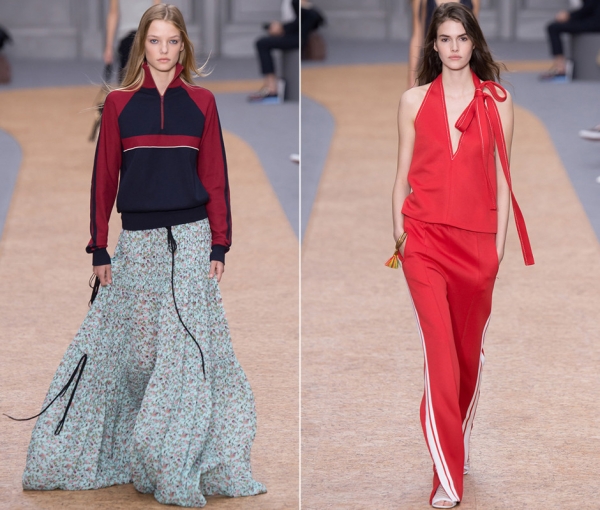 Новая коллекция креативного директора Chloé, британки Клэр Уэйт Келлер, удивила поклонниц французской марки. На этот раз в Париже они увидели не совсем то, что ожидали. К привычному романтическому образу Chloé дизайнер добавила сильный спортивный акцент в стиле 1990-х: рейвы, смелые эксперименты в одежде, буйная молодость. Свободные брюки с двумя белыми полосами, до боли напоминающие спортивные штаны, модельер предлагает носить с кружевами и вечерней укладкой, а двухцветные спортивные кофты сочетать с воздушными юбками в пол. Особого упоминания заслуживает джинсовая часть коллекции. Свободные до мешковатости платья, юбки и шорты с намеренно растрепанными краями.