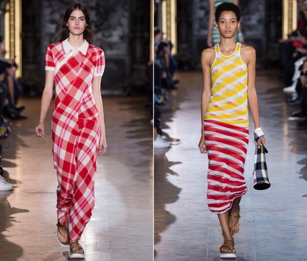От новой коллекции Стеллы Маккартни может слегка зарябить в глазах. Столько в ней переплетающихся клеток и полосок, а также настоящее буйство цветов, что для британки раньше было совсем несвойственно. Будучи убежденной защитницей животных, тренд на кожу и замшу она поддержать не могла, поэтому основой своей коллекции сделала трикотаж. Весной-летом 2016, по мнению дизайнера, модно будет носить поло и майки с длинными спортивными юбками и однотонные удлиненные жилеты со свободно ниспадающими брюками.