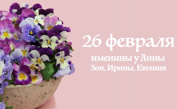 Какой сегодня день: приметы, именины, лунный календарь на 26 февраля 2016 UaUa.info отслеживает для вас праздники и интересные события на сегодня, 26 февраля 2016, и подсказывает, как планировать день в согласии с лунным календарем на 26 февраля 2016. Какой сегодня день, какая сейчас луна, а также: Именины 26 февраля и поздравления с Днем ангела Анны, Зои, Ирины и Евгения. Погода в Киеве 26 февраля 2016: 4 градуса тепла, снег и дождь. 26 февраля, пятница Какой сегодня лунный день: 26 февраля 2016 — 18 лунный день. Сегодня стрижка усилит вашу энергетическую привлекательность и позитивно скажется на здоровье. Лунный день сегодня, 26 февраля 2016 года, проходит в знаке Весы. Это расслабляющий период, когда можно отдохнуть от напряженных дел и срочных решений. 26 февраля 2016 года — Появляются итоги усилий, приложенных в начале лунного месяца. Можно судить о том, насколько продуктивны вы были. В 18 лунный день сегодня, 26 февраля 2016, стоит быть готовым к препятствиям и проблемам, которые изрядно потрепают нервы. Именинники сегодня, 26 февраля 2016 День ангела сегодня, 26 февраля, празднуют Артемий, Василий, Владимир, Гавриил, Евгений, Иван, Леонтий, Мартин, Михаил, Николай, Павел, Тимофей, Анна, Вера, Зоя, Ирина, Светлана. Отправьте друзьям смс-поздравление с Днем ангела 26 февраля. Смс поздравления с Днем ангела для Анны Сегодня День ангела Анны прекрасной, Любимой и милой Анютки моей. Тебе я желаю, чтоб было всё классно, Чтоб жизнь с каждым днём становилась светлей. Пусть ангел тебя от беды охраняет, По верной дороге к успеху ведёт. Пусть счастье твоим частым гостем бывает, И радостный день всегда утро несёт. Поздравления с именинами Зои Дорогая наша Зоя, Мы хотим поздравить стоя С именинами тебя! И желаем мы, любя, Долгой жизни, светлых дней, Верных, преданных друзей, Счастья женского, любви, Лёгкой, радостной судьбы!