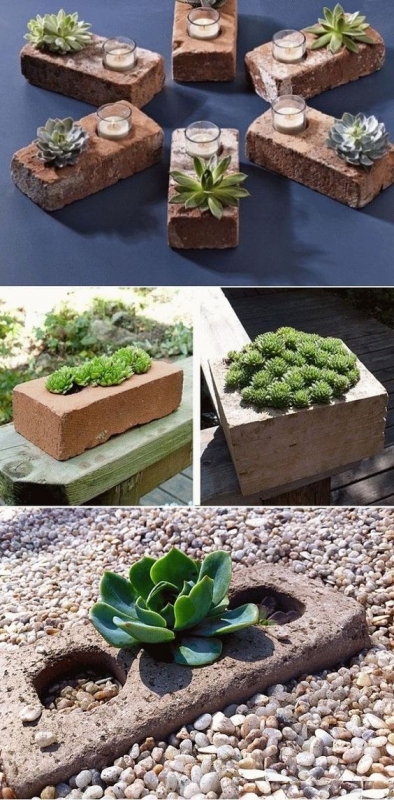 Выемки в кирпичах или цеменных блоках тоже подойдут для размещения комнатных растений. Смотрите сами: выглядит, как победа живой природы над руктворным человеческим миром.
