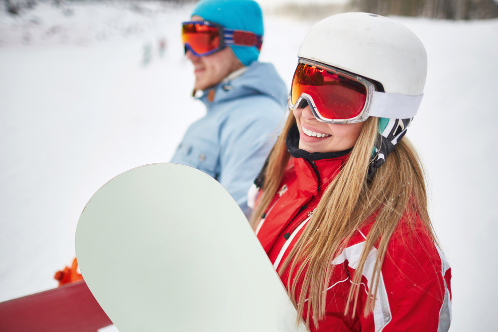 Юлия: В Карпатах, катаясь на сноубордах.