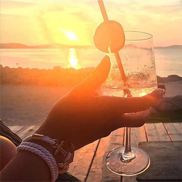 Вот она, навстречу закату, поднимает бокал вина и получает дозу эндорфинов от этого янтарного тепла.