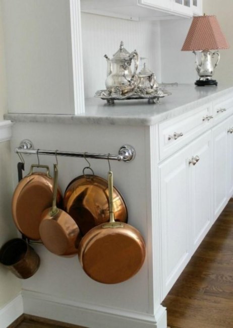 Карнизы для кухонной утвари в самом неожиданном месте помогут организовать дополнительное пространство там, где оно больше всего надо.