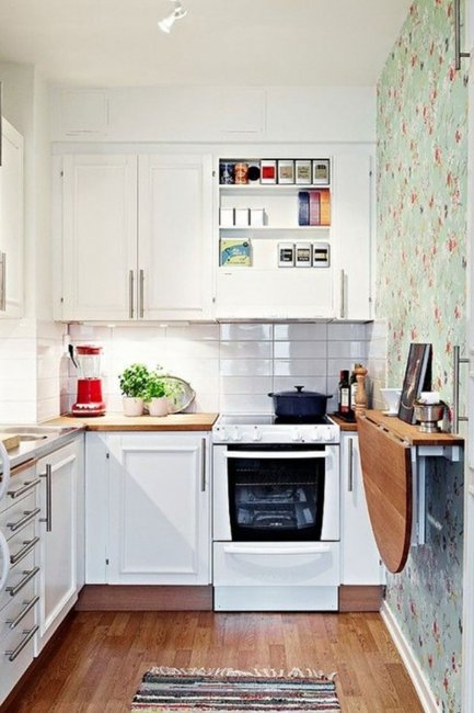 Теперь вы знаете достаточно идей, как любое свободное пространство на вашей маленькой кухне превратить в помощника и выжать максимум из минимума для организации кухонной утвари.