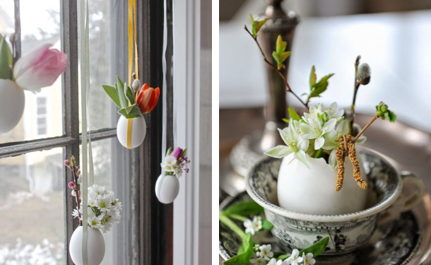 Цветы прекрасны сами по себе. Но если вы решили их стилизовать под пасхальные украшения, вот несколько оригинальных идей на фото.