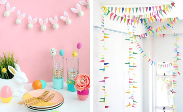 Чтобы украсить к Пасхе дом, в котором живут дети, воспользуйтесь нашими идеями. Для декора можно использовать бумажные гирлянды, помпоны из пряжи, воздушные шары.