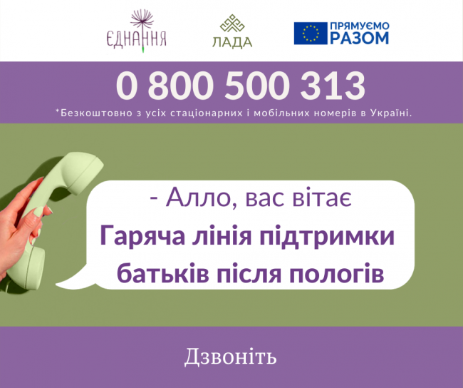 Отже, тепер кожна родина, в якій народилося немовля, може подзвонити на Гарячу лінію підтримки батьків після пологів за номером 0 800 500 313.