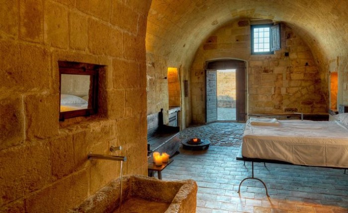 Этот отель устроен в заброшенных древних пещерах, которые находятся неподалёку от современного города Матера в южной части Италии. Потребовалось 10 лет, чтобы переоборудовать пещеры Sextantio le Grotte della Civita так, чтобы они не утратили своего древнего очарования и гости чувствовали себя в них достаточно комфортно.
