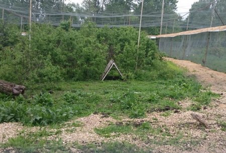 Рядом с птицами в заросшем вольере поселили соболей. Не одного, не двух, а сразу 20! Но хорошенько рассмотреть их не удалось — это же лесные хищники. Они осторожно выглядывали из своих укрытий, но нескольких мы все же увидели. Каким-то образом в вольер к соболям попал дикий ястреб (его можно увидеть в правом нижнем углу фото). Он был испуган и практически не двигался. Что с ним делать, сотрудники пока не решили.