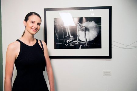 Куратор выставки Наталия Герасина представила экспозицию гостям и рассказала об ее особенностях: «Мы включили в экспозицию и ранние работы фотографа, самые первые, которые попали в British journal for photography, один из самых авторитетных журналов о фотографии. После публикации в этом издании Саша Гусов прославился на весь мир. Его начали приглашать и воспринимать как профессионального фотографа. Саша снимал гастроли Большого театра в Лондоне в разные годы, продолжает снимать и сейчас. В экспозиции мы совместили кадры с репетиций, закулисье и фотографии с выступлений».