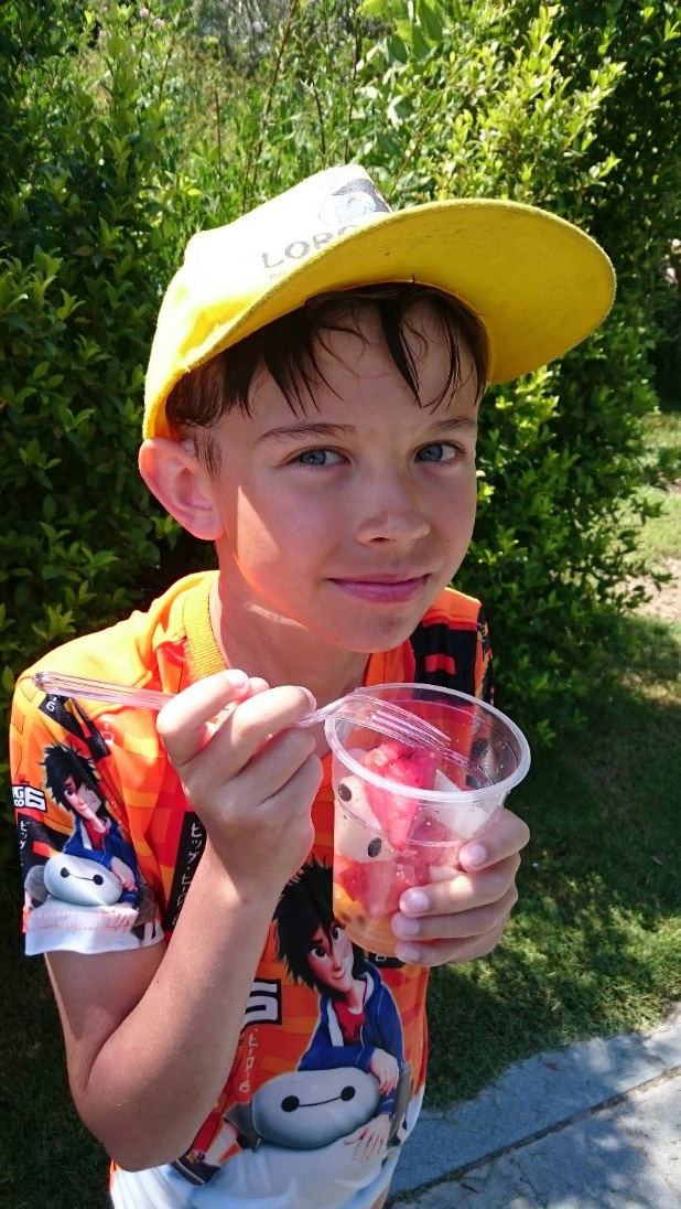 По пути на пляж нужно непременно пройти по дорожке, на которой расположен фруктовый бар, и взять с собой стаканчик с готовым фруктовым салатом или собственноручно выбрать любимые фрукты.