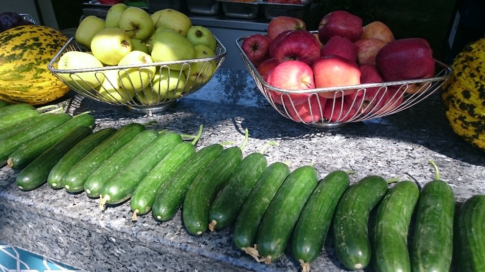 И не только фрукты здесь можно взять с собой. Рука сама тянется к этим замечательным свежим огурчикам!