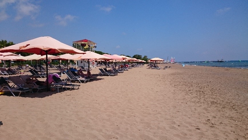 Лежаков на пляже более чем достаточно, так что занимать их с раннего утра совершенно ни к чему. Как и в предыдущем отеле Али Бей, зонтики и лежаки стоят на комфортном расстоянии друг от друга, чтобы отдыхающие не мешали друг другу.