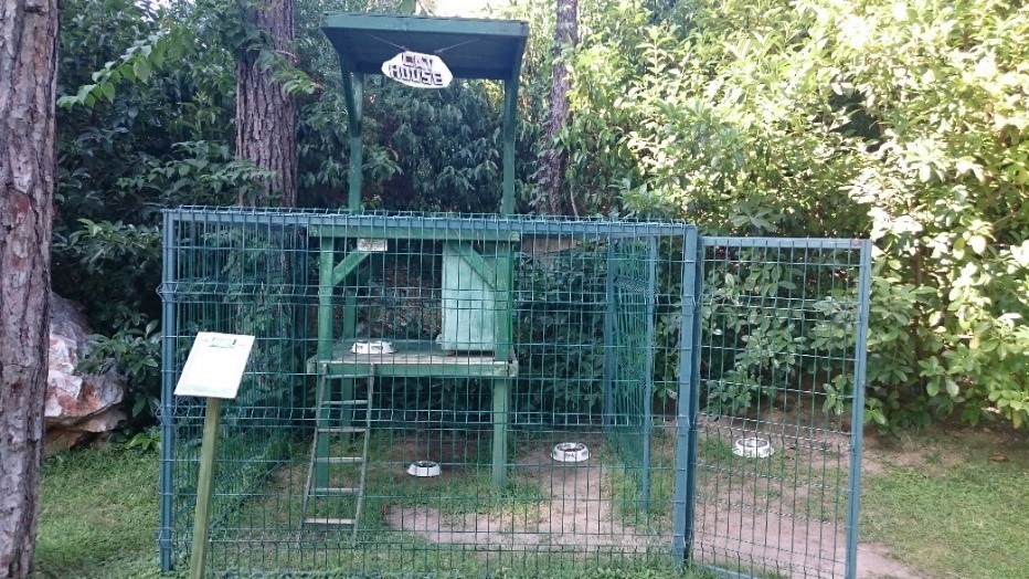 У кошек есть свой кошачий дом, где для них всегда готова еда. А гостей отеля просят не кормить их в ресторанах.