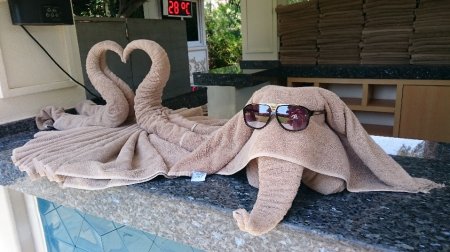 Впечатление об отдыхе складывается из мелочей. Поэтому даже в пункте выдачи полотенец стараются сделать так, чтобы гости улыбнулись, увидев забавные фигурки из тех же полотенец.