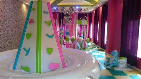 В отдельном помещении мини-клуба есть даже карусели и надувной скалодром!