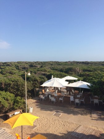 С террасы пляжного бара открывается вид, как будто вы высоко в горах. Обман зрения: просто деревья низенькие.