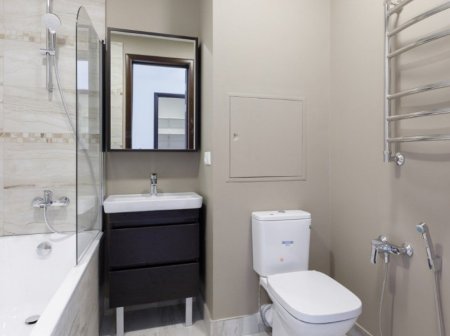 Санузел квартиры в точности повторяет цвета, использованные в гостиной, однако выглядит не так "журнально". В нем, как и на кухне актрисы, есть все необходимое, и, к счастью, она обошлась без вычурных элементов декора, которые обожают многие российские знаменитости.