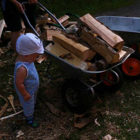 Для местных жителей здесь есть все условия: Дом культуры, баня, стадион, спортивный зал, библиотека, две школы, три садика, салоны красоты и много магазинов. Во дворах домов — красивые детские площадки, а по пути на пляж — настоящий сосновый бор. Интересно, что большинство домов отапливается при помощи печки. Поэтому я не могу пройти мимо заготовки дров и даже сам лично поучаствовал в транспортировке дров с одного двора на другой.