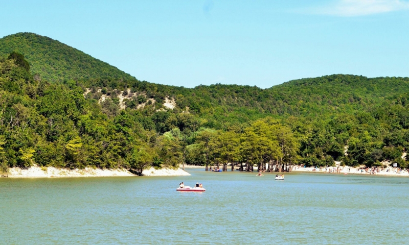Туристов тут очень много. Солнце печет так сильно, что хочется поскорее укрыться в тени. Любители хорошего клева давно облюбовали это место. В озере много различной рыбы: карась, карп, амур и сазан. С пустыми руками с рыбной ловли точно не уйдете! Получите удовольствие от настоящей рыбалки, после которой улов сразу же можно приготовить.